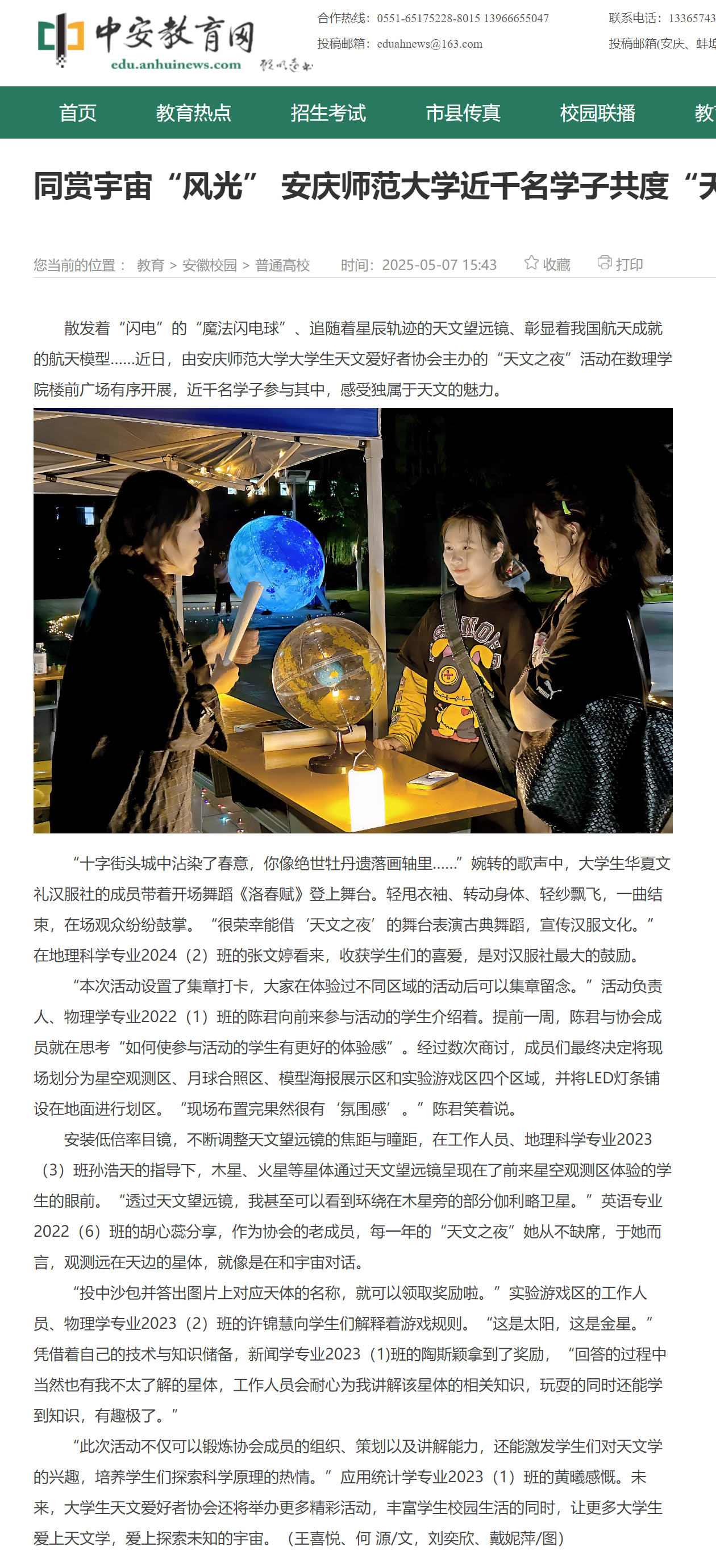 中安教育網(wǎng):同賞宇宙“風(fēng)光” 安慶師范大學(xué)近千名學(xué)子共度“天文之夜”