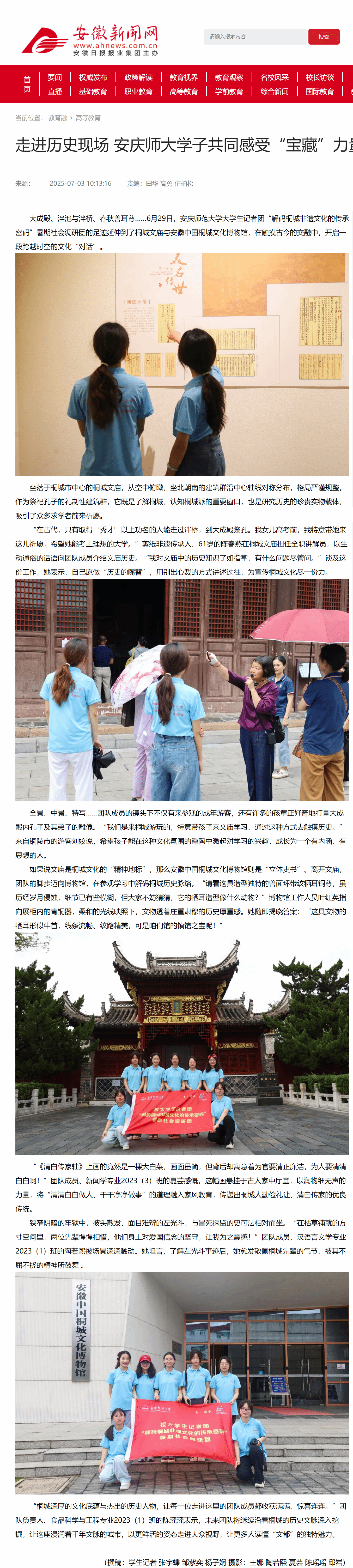安徽新聞網:走進歷史現場 安慶師大學子共同感受“寶藏”力量