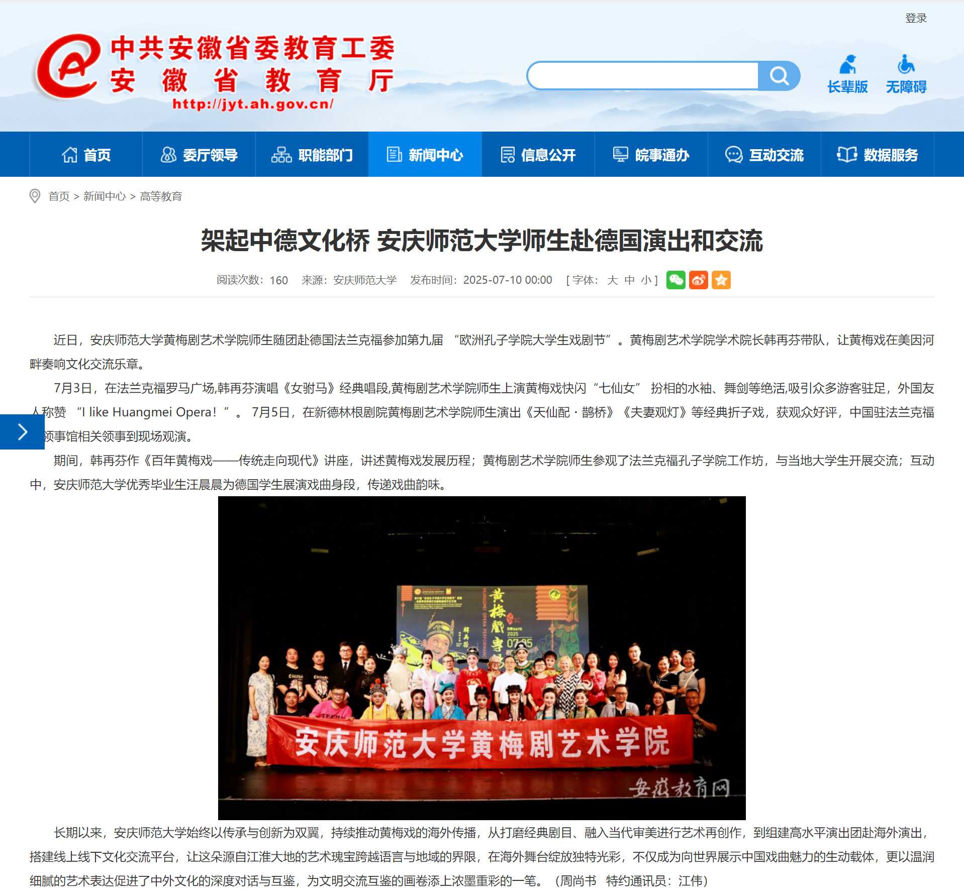 安徽教育網:架起中德文化橋 安慶師范大學師生赴德國演出和交流