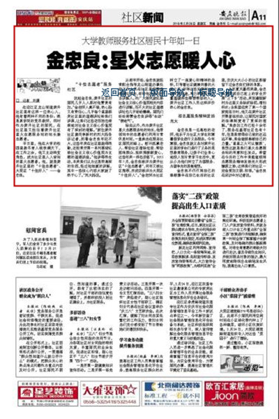 (編者按:2月26日,《安慶晚報(bào)》刊登文章《大學(xué)教師服務(wù)社區(qū)居民十年如一日 金忠良:星火志愿暖人心》,報(bào)道了榮升社區(qū) “十佳志愿者”、大觀區(qū)“十佳好人”、我校政治學(xué)院金忠良老師長(zhǎng)期志愿服務(wù)社區(qū)的新聞。)