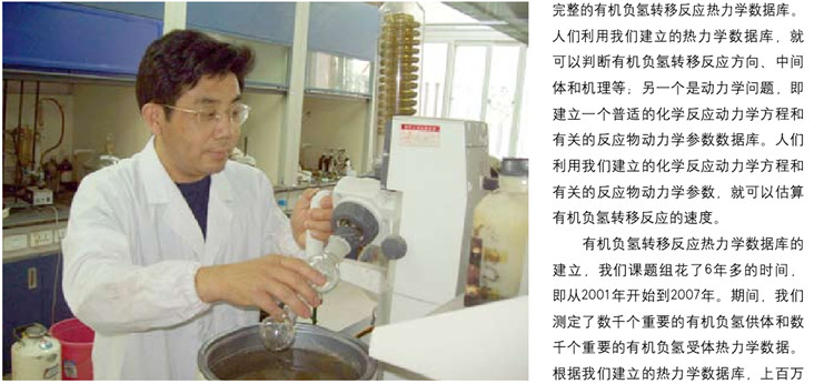 機會在2001年降臨,在南開大學工作了兩年的我獲得了國家杰出青年基金資助,當時基金課題是“有機負氫轉移反應熱力學和動力學”,目的是要解決有機負氫轉移反應中兩大基礎科學問題:一個是熱力學問題,即建立世界上唯一的比較完整的有機負氫轉移反應熱力學數據庫。人們利用我們建立的熱力學數據庫,就可以判斷有機負氫轉移反應方向、中間體和機理等;另一個是動力學問題,即建立一個普適的化學反應動力學方程和有關的反應物動力學參數數據庫。人們利用我們建立的化學反應動力學方程和有關的反應物動力學參數,就可以估算有機負氫轉移反應的速度。