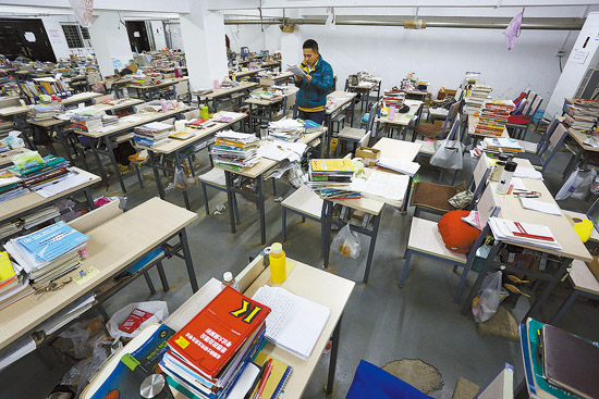 在安慶師范學(xué)院報(bào)考2016年碩士研究生的2000余人中,倪明亮只是普通的一員。在全國百萬報(bào)考學(xué)生中,安慶師范學(xué)院的報(bào)考學(xué)生也不過是極小的一部分。在這所安徽省內(nèi)高校,每年大約有18%~21%的畢業(yè)生考取碩士研究生,部分專業(yè)每年近一半學(xué)生考取研究生,一個(gè)宿舍同時(shí)考取七八人的現(xiàn)象層出不窮。2009年,該校地理專業(yè)甚至出現(xiàn)一個(gè)班45人報(bào)考錄取43人。備戰(zhàn)考研期間,在全國各地發(fā)生過的為考研占座擠破門、凌晨坐在板凳上排隊(duì)、用鐵鏈鎖上桌椅等各種“奇葩”新聞,也曾在這里上演。