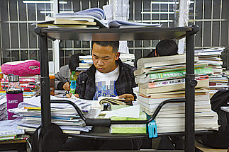 倪明亮經(jīng)常是晚上最后一個(gè)離開考研自習(xí)室的。回到宿舍后,他和兩個(gè)考研的室友繼續(xù)看書直到凌晨2點(diǎn)多。3個(gè)小時(shí)后,他第一個(gè)起床。因?yàn)樘纾程玫拈T還沒有開。一天早中晚,牛奶加咖啡,沖上三大杯。除去片刻午休,其余時(shí)間他都在學(xué)習(xí)。他并不是獨(dú)自戰(zhàn)斗,他的一些同學(xué)為了節(jié)省時(shí)間,午餐時(shí)一邊吃著盒飯一邊看書。