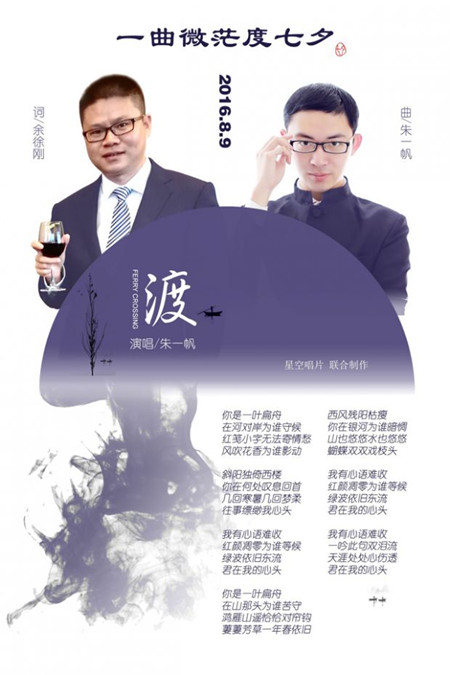 (安徽網(wǎng),8月8日)近日,一首由余徐剛作詞,由朱一帆作曲并演唱的歌曲《渡》,在全國163個電臺、音樂網(wǎng)站同時放送。成為2016年七夕中最火熱的音樂作品。